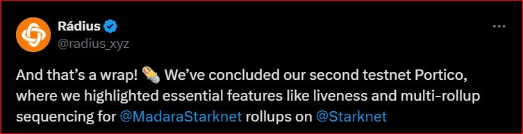 Radius announces partnership with Witness Chain to integrate Witnesschain Rollups Watchtowers to achieve faster and secure cross-chain bridging.