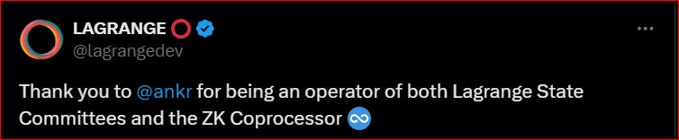 Ankr announces to have added Lagrange as its AVS client on EigenLayer.