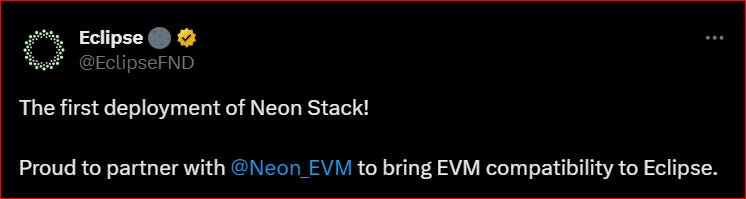 Eclipse announces with Neon to bring EVM compatibility to Eclipse.
