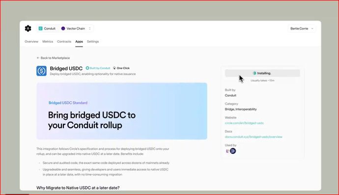 Conduit announces support for Circle's official Bridged USDC standard directly from the Conduit Marketplace.