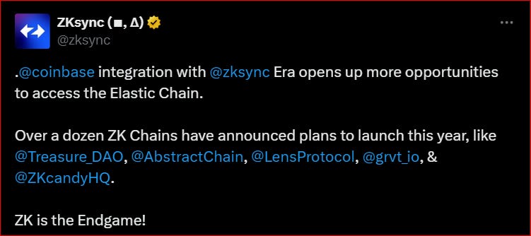 ZKsync is now live on Coinbase with the integration set to open more opportunities to access the Elastic Chain.